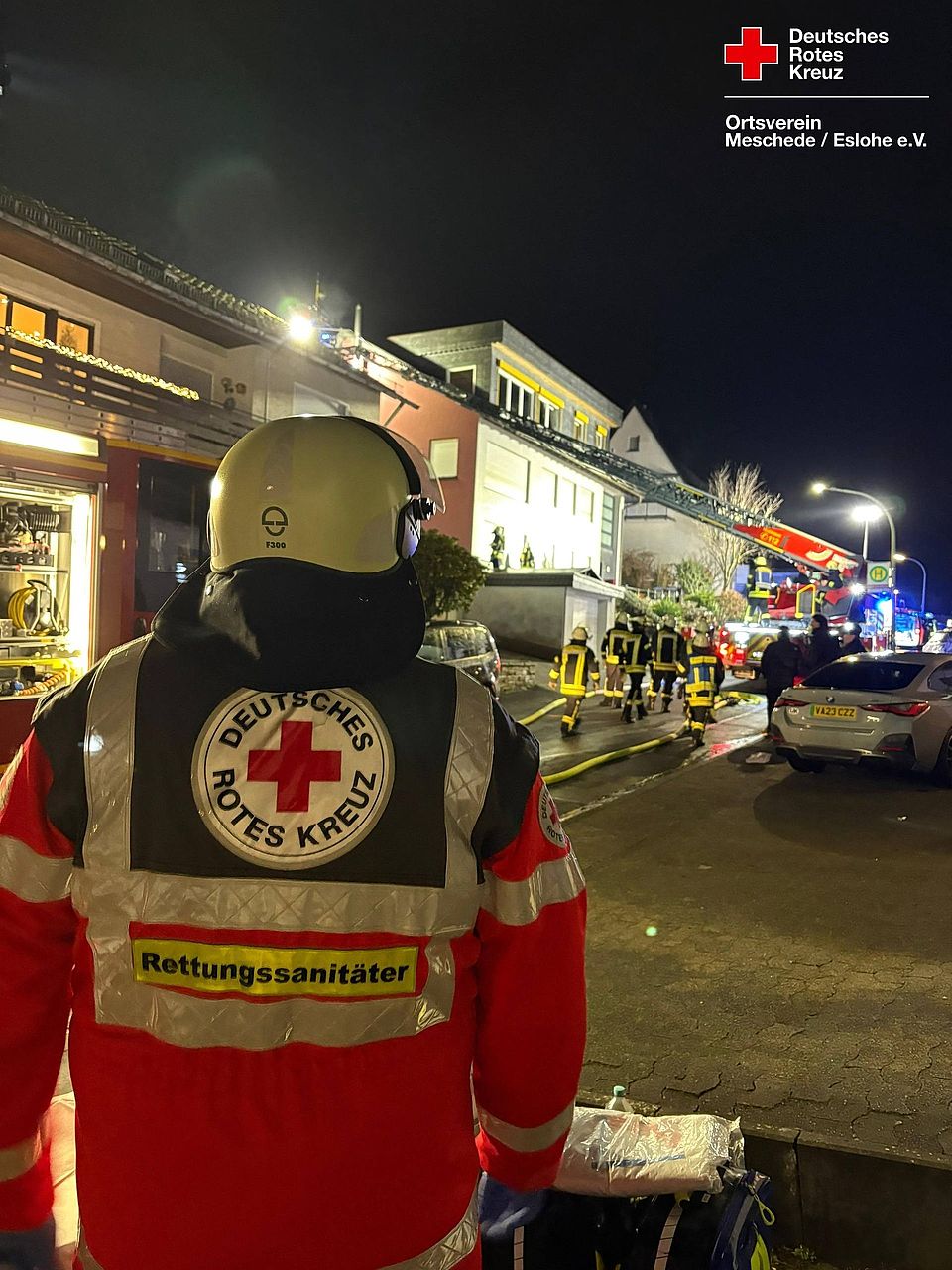 Unser Führungsdienst (B-Dienst HiOrg HSK) stand dem Einsatzleiter der Feuerwehr als Ansprechpartner zur Verfügung. Aufgrund eines parallellaufenden Einsatzes hätte die Möglichkeit bestanden, einen weiteren Rettungswagen vom DRK zu besetzen. Dies war allerdings nicht nötig.