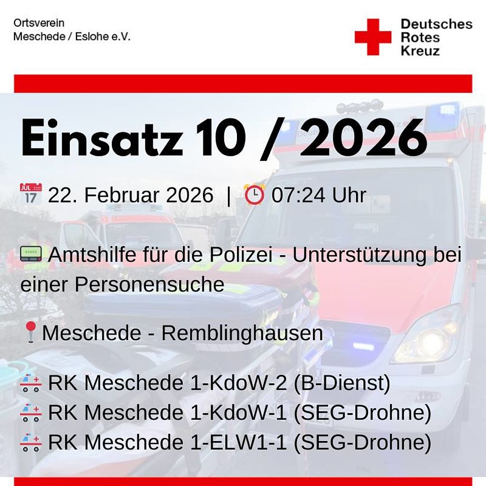 | Alarmierte DRK-Einheiten: | B-Dienst + SEG-Drohne |